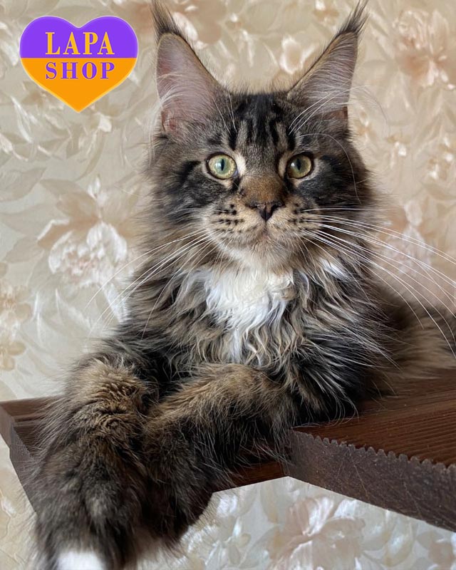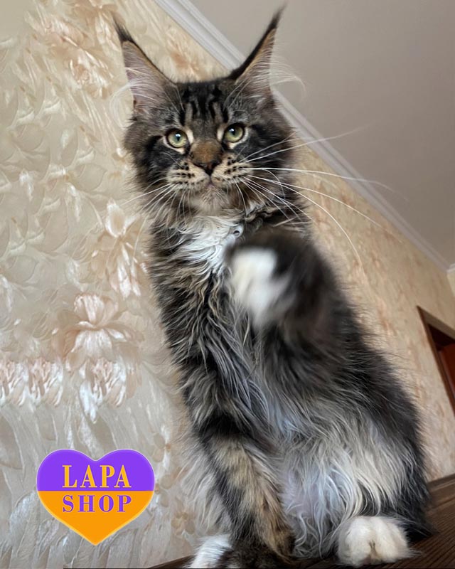 Izumrud – мейн-кун в элегантном черном мраморном с белым окрасе (n 22 03).