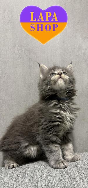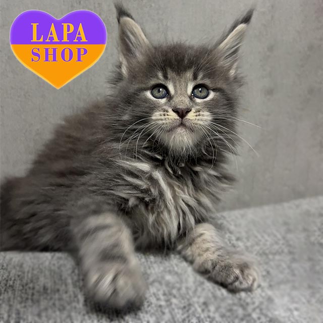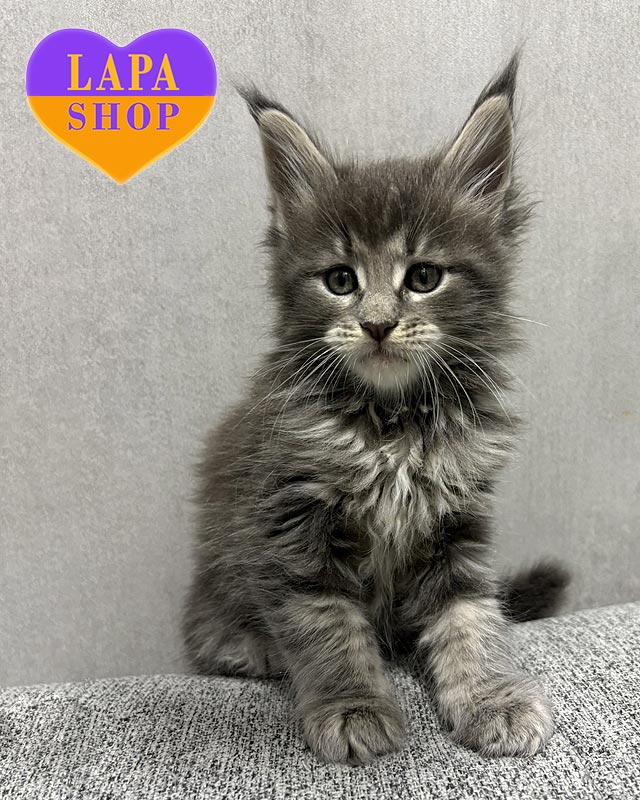 Jakoba – настоящая маленькая леди с эффектной голубым мраморным окрасом и пушистым хвостом.