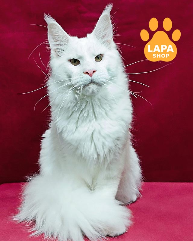 Его яркие желтые глаза и белый окрас подчеркивают величие и элегантность породы. Jazz всегда интересуется всем вокруг и излучает естественную уверенность.