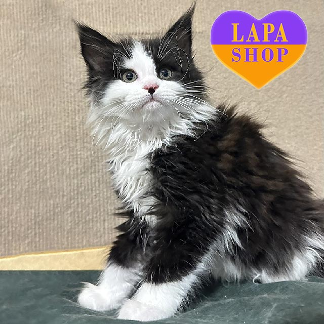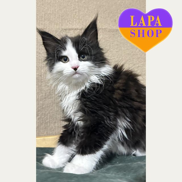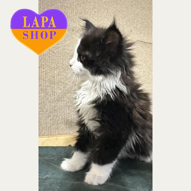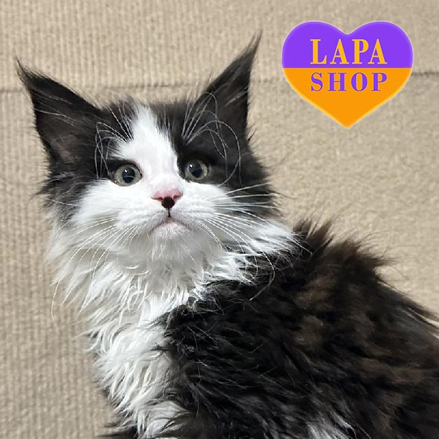 Koko Chanel – кошечка мейн-кун с роскошным черным серебристым биколорным окрасом. Ее пушистая шубка выглядит элегантно и благородно, а главным украшением является маленькая мушка на носике – очаровательная особенность, придающая ей еще больше шарма.