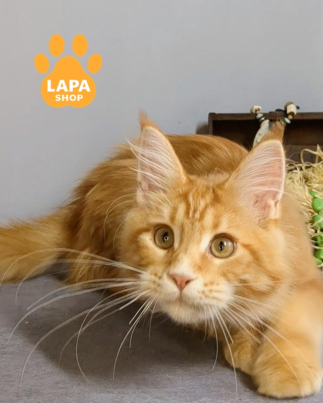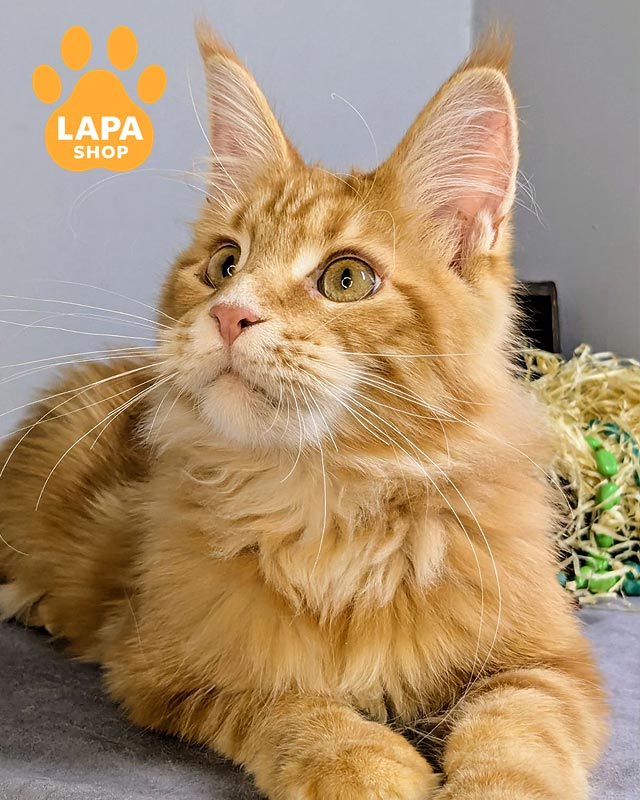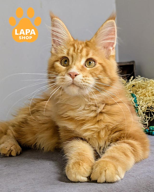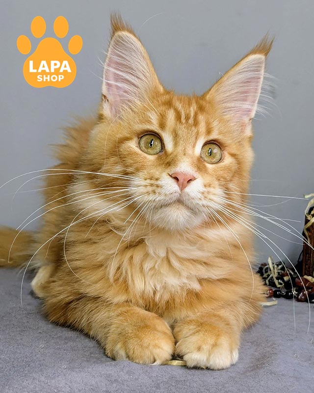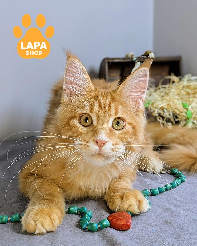 Quora – настоящая красавица мейн-кун с ярким красным мехом, украшенным роскошным мраморным узором.