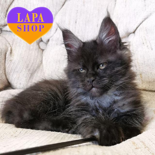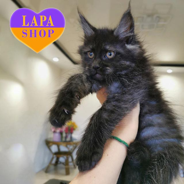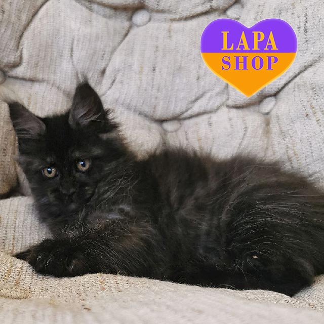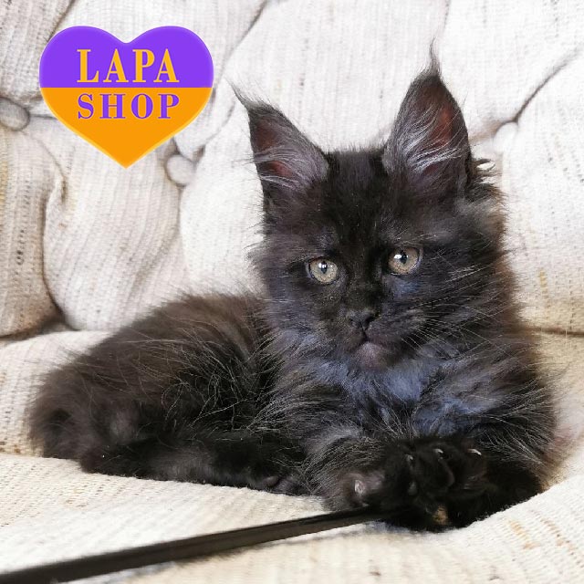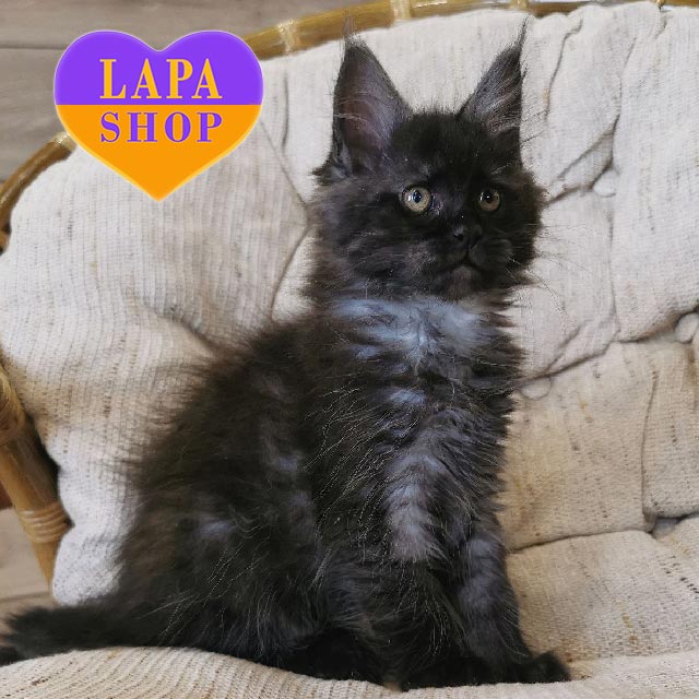 Ula — роскошная кошечка мейн-кун с поразительным черным дымным окрасом.
