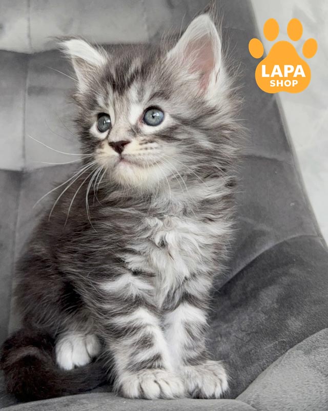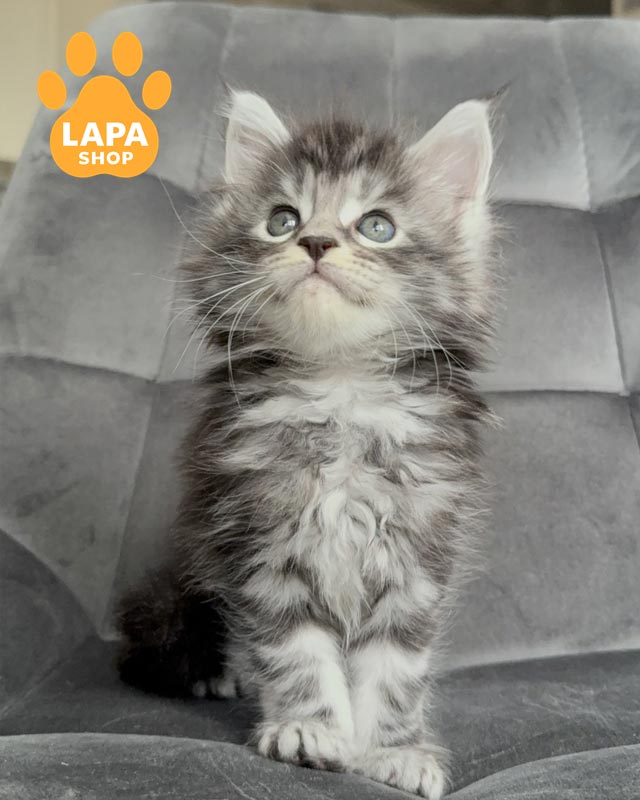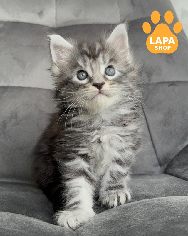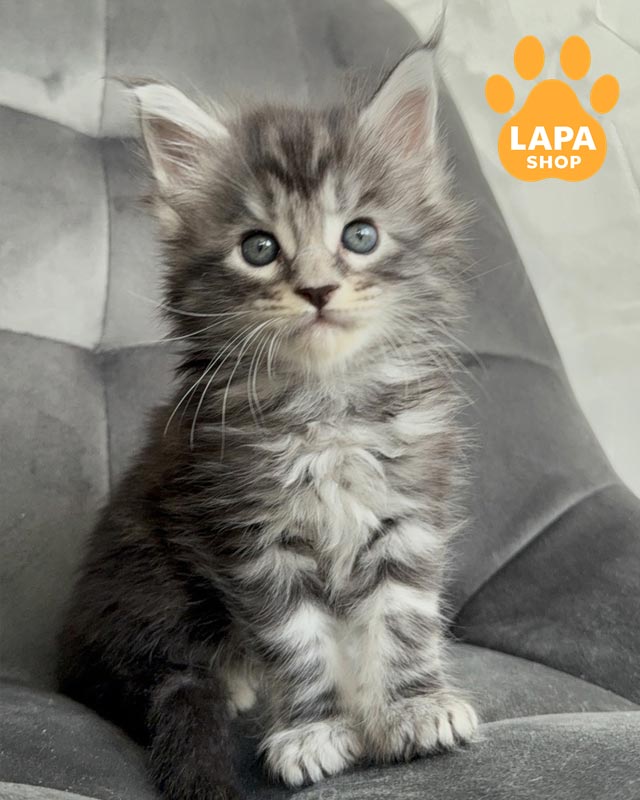 Dallas — изысканный мальчик мейн-кун с черным серебристым мраморным окрасом, который выглядит как творение природы.