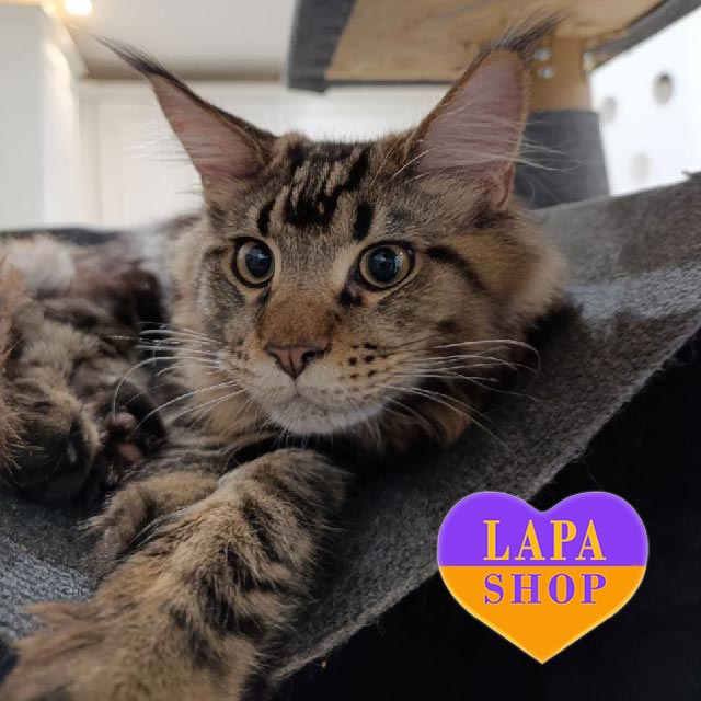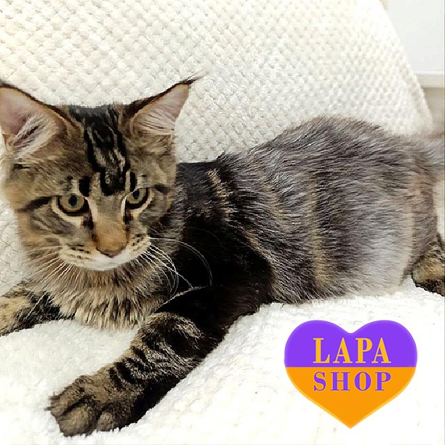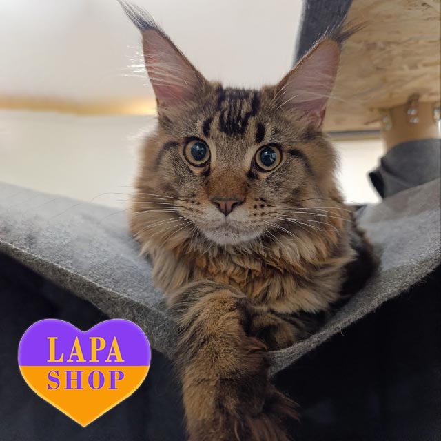 Эдгар — это мальчик мейн-кун с поразительной черным мраморным окрасом, который напоминает произведение искусства. Его густой, роскошный мех переливается оттенками, создавая неповторимый узор.