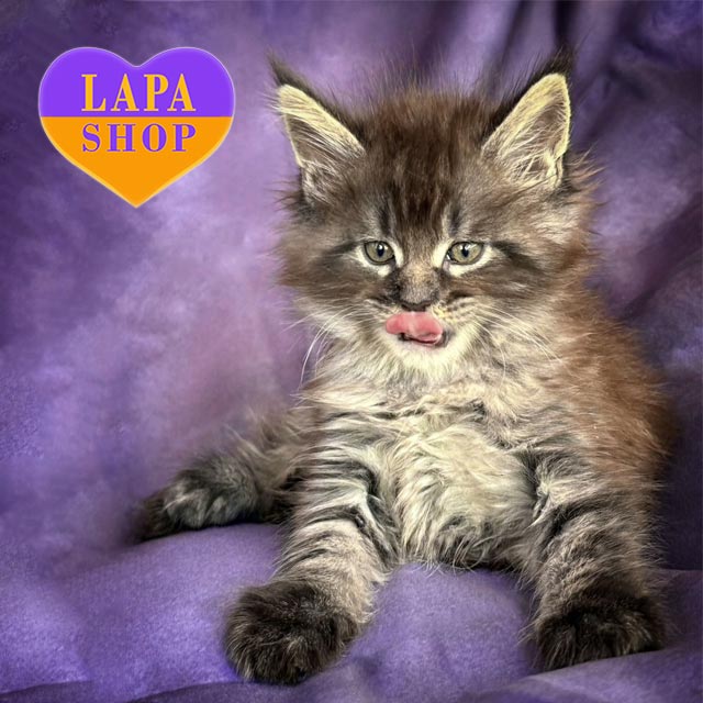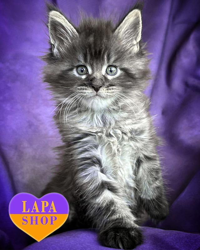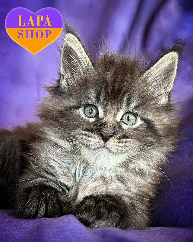 Его большие выразительные глаза и благородный профиль подчеркивают настоящее мейн-куновское величие. Малыш имеет крепкое телосложение, пушистый хвост и шелковистую шерсть, которую хочется гладить без конца.