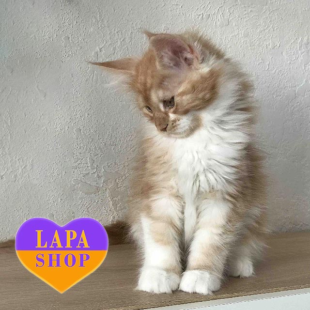 Rambo – котенок мейн-кун с красным мраморным окрасом и белоснежными отметинами. Его роскошная шерсть подчеркивает величие породы, а выразительный взгляд излучает уверенность и любопытство.