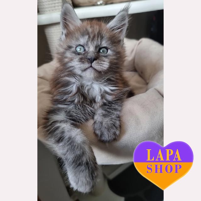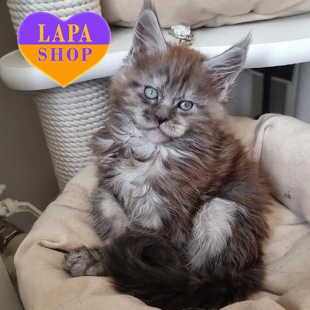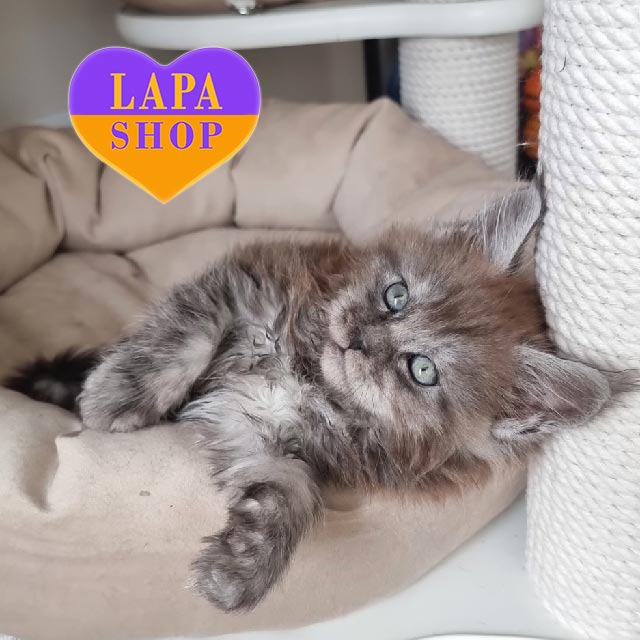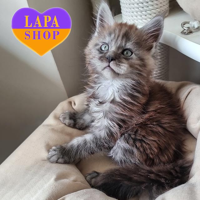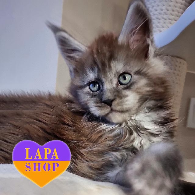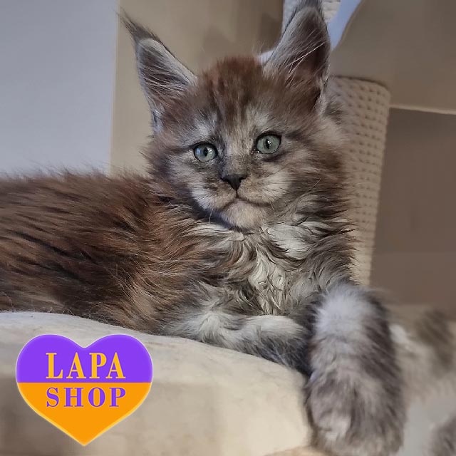 Ximas – настоящий аристократ среди мейн-кунов. Его роскошная черная шерсть с дымным отливом делает его невероятно эффектным, а проницательный взгляд подчеркивает любознательный и умный характер.