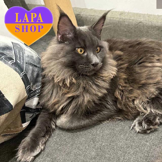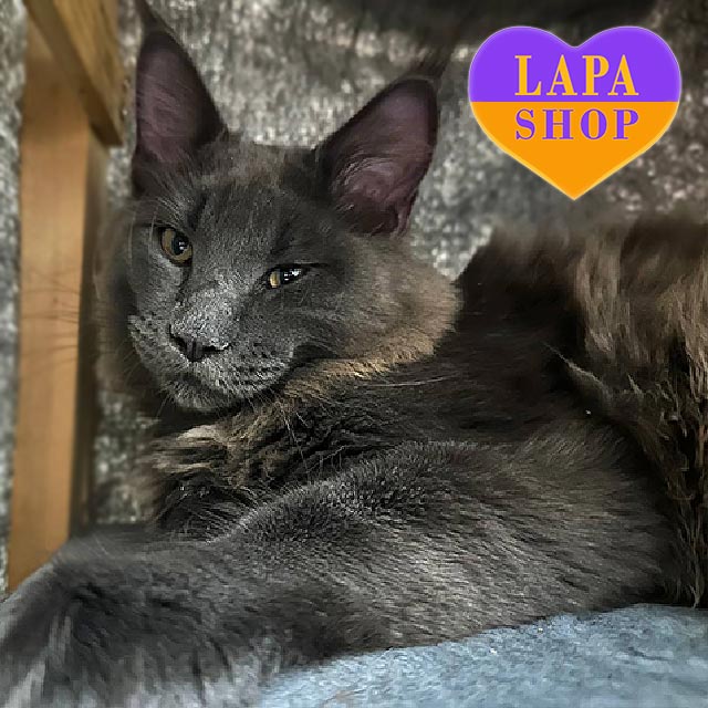 Эдвард — очаровательный мейн-кун с благородным голубым солидным окраском. Его густой одноцветный шерстяной покров подчеркивает величественное телосложение.