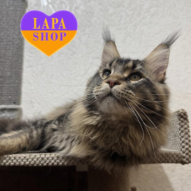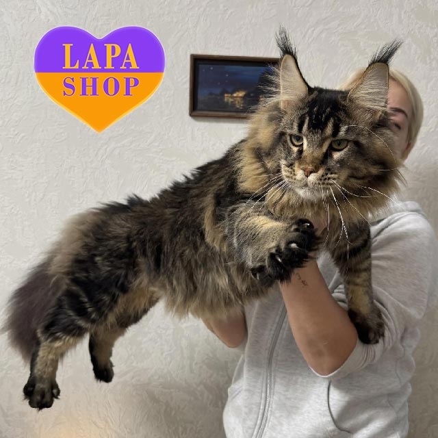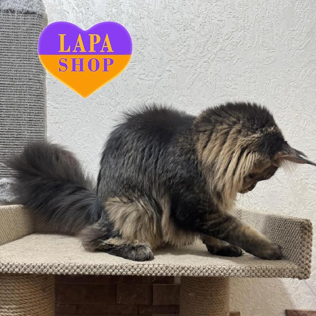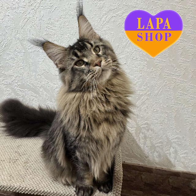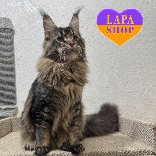 Emir – очаровательный мейн-кун с черным тикированным окрасом. Его черный тикированный окрас придает шерсти переливающегося блеска, который завораживает с первого взгляда.