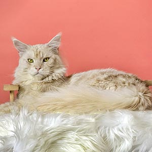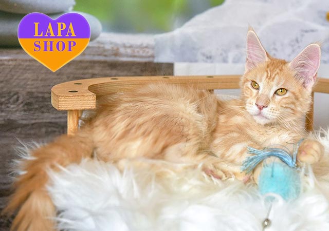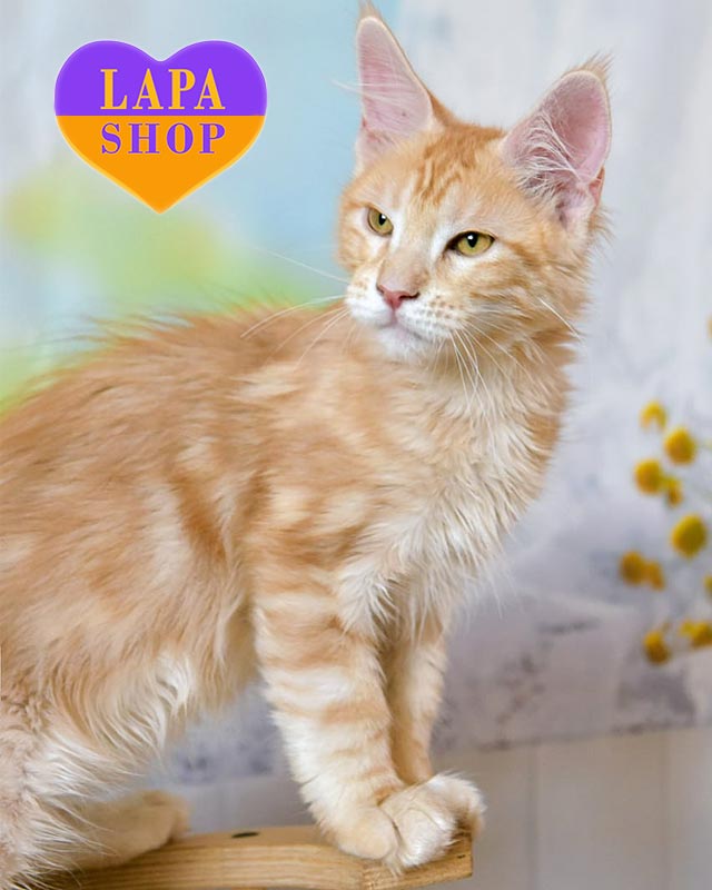 Spark – яркий мейн-кун в роскошной шубке. Его пушистая шерсть переливается на солнце, как пламя. А очаровательные глазки завораживают с первого взгляда.