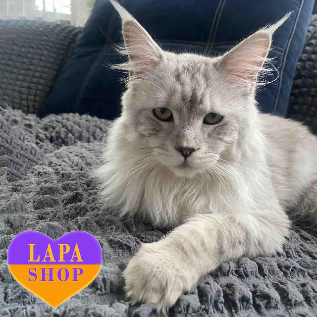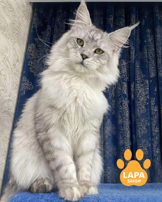 Zhorik – величественный мейн-кун с серебристым затушеванным окрасом, который придает ему изысканный и аристократический вид.
