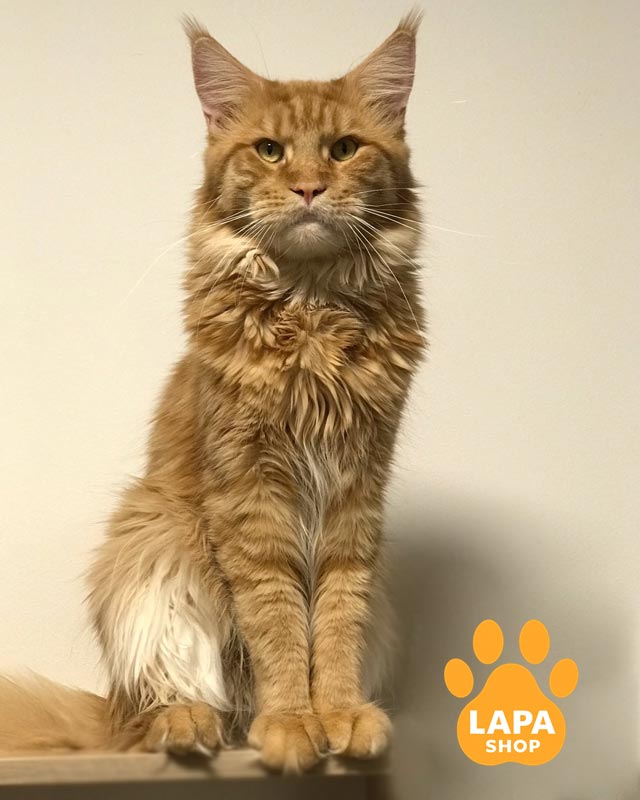 Pink Floyd – яркий рыжий мейн-кун с эффектным красным тигровым окрасом, подчеркивающий его грациозность и силу.