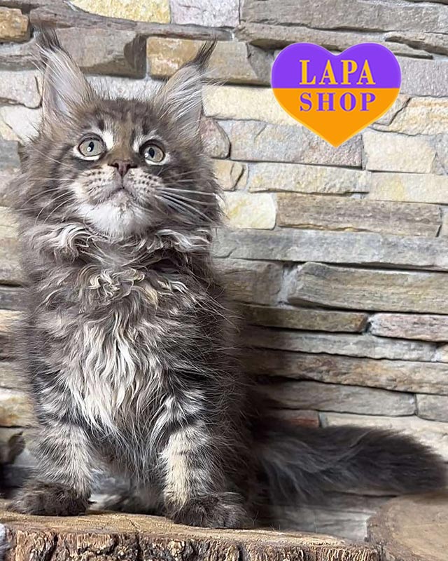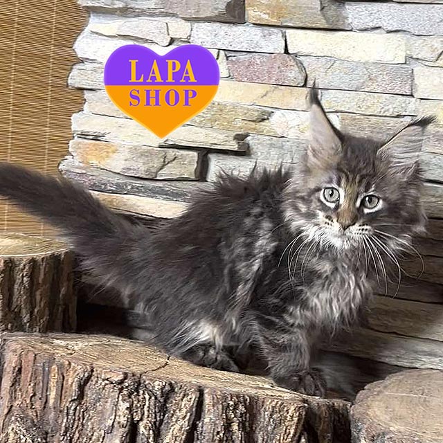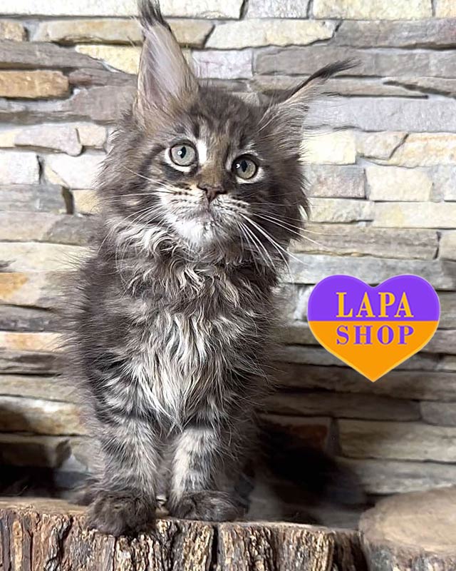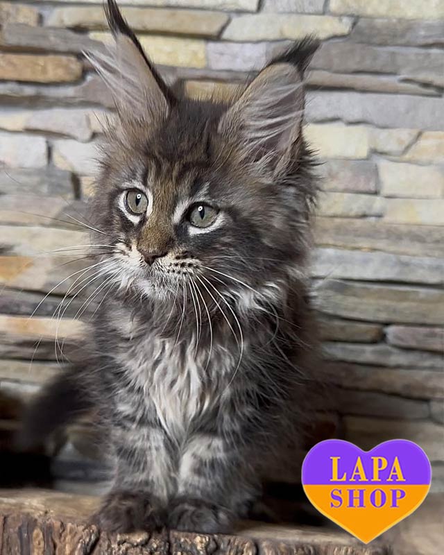 Quella – изысканная девочка мейн-кун с роскошным черным мраморным окрасом.