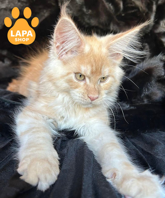 Lexus – впечатляющий котик с роскошным красным серебристым мраморным окрасом, который выглядит действительно эффектно. Его выразительная шерсть с четким мраморным рисунком подчеркивает породный тип и делает внешность еще более благородной. Гармонические черты мордашки и длинные пушистые ушки придают ему подлинное мейн-куновское величие.
