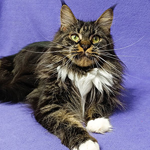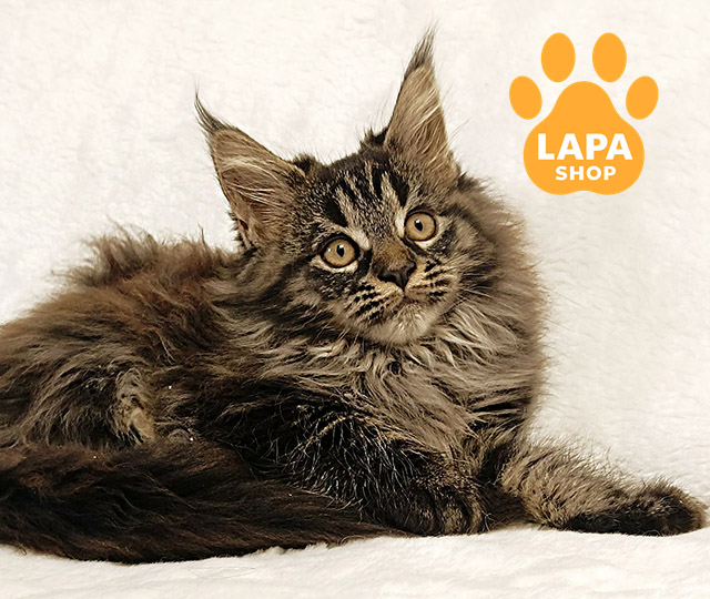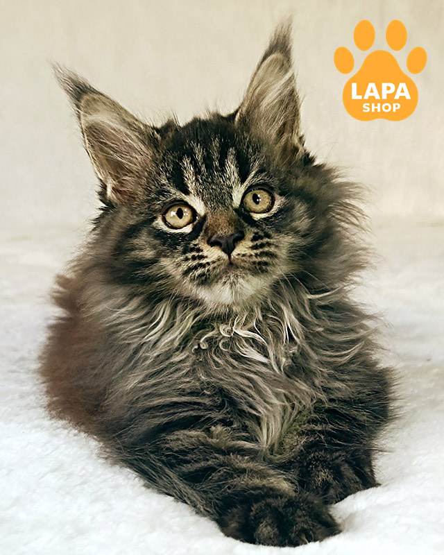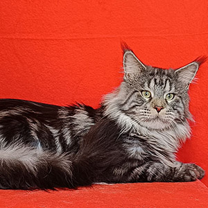 Nebula – очаровательная и выразительная девочка породы мейн-кун с насыщенным черным мраморным окрасом, красиво подчеркивающим ее благородные черты. Ее облик сочетает в себе мягкость линий и эффектную контрастность, что делает Nebula настоящей маленькой звездой среди котят.