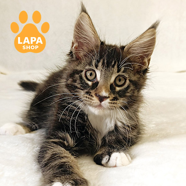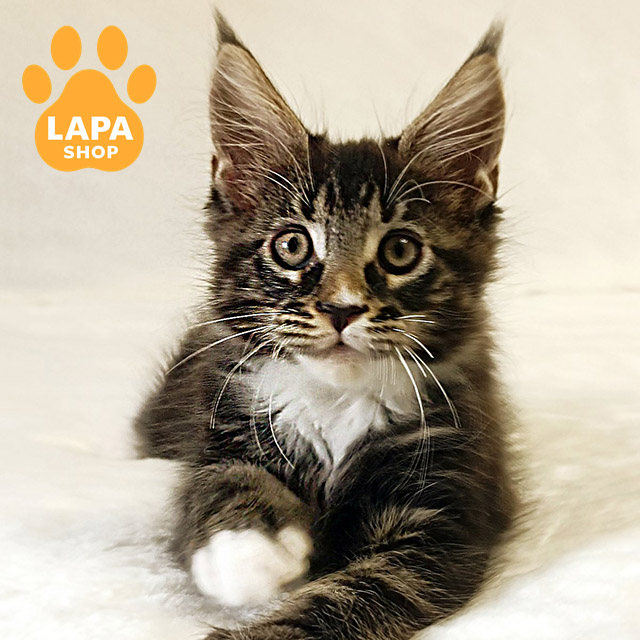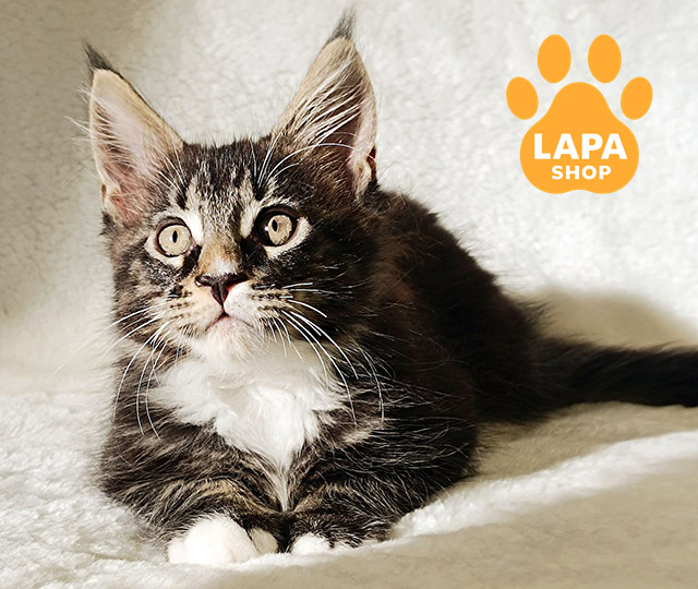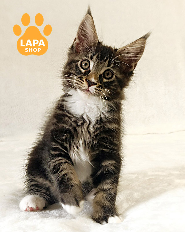 Nick – яркий и выразительный мальчик породы мейн-кун с насыщенным черным мраморным окрасом и стильными белыми акцентами. Его внешность смотрится гармонично и очень привлекательно, подчеркивая благородный тип породы. Крепкое телосложение и ухоженный вид делают