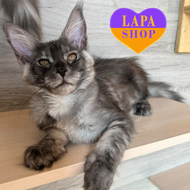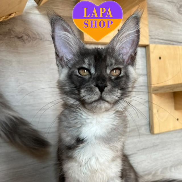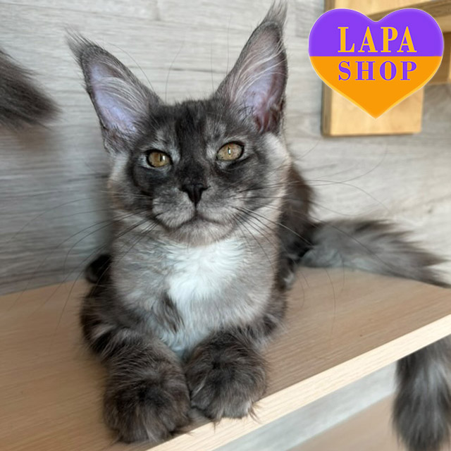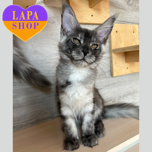 Olivia — очаровательная кошечка породы мейн-кун с изысканным дымым окрасом, который придает ей особый шарм. Ее элегантная внешность делает ее настоящим украшением любой семьи.