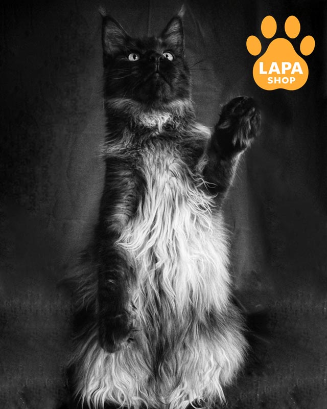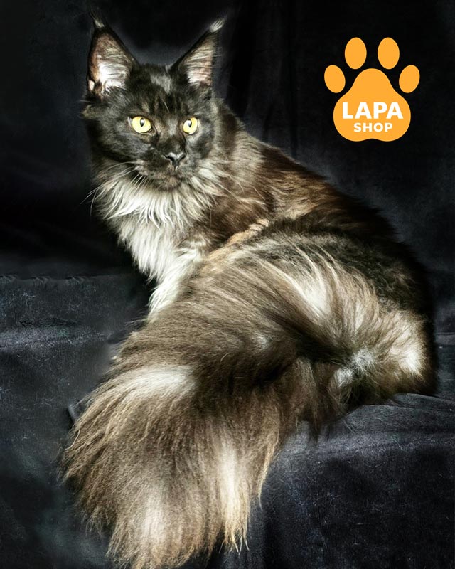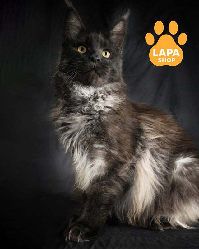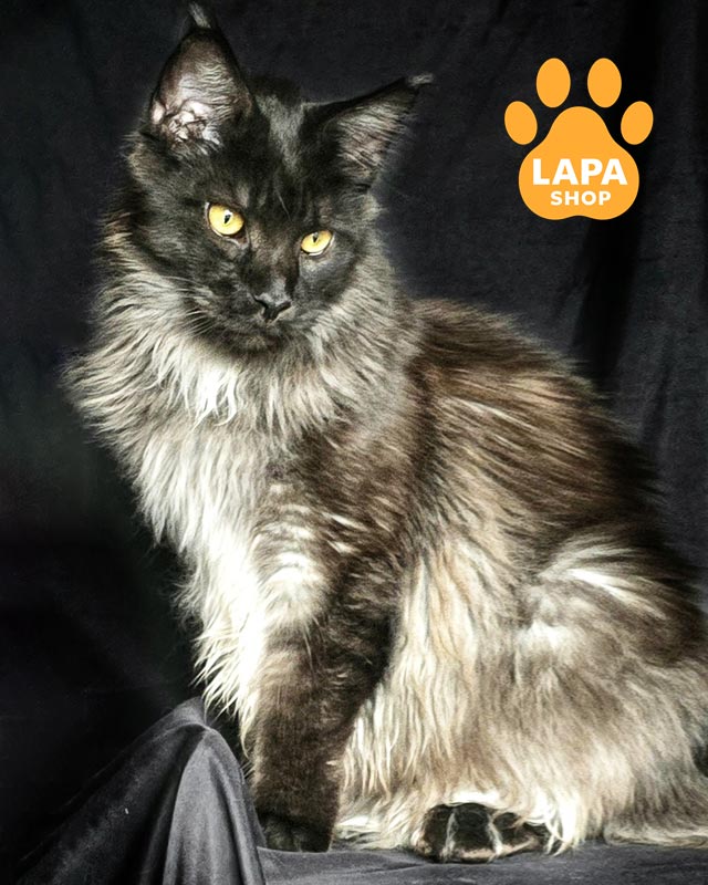 Orpheus — очаровательный мейн-кун с глубокой черным дымным окраском, который играет оттенками на свете и делает его внешность по-настоящему эффектной. Его мягкая шерсть и гармоничное телосложение подчеркивают породную элегантность.
