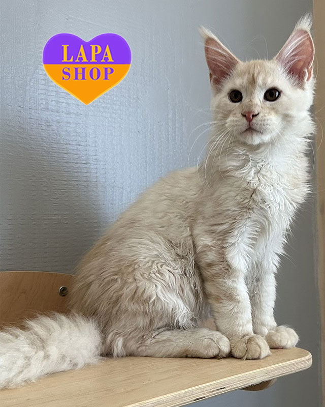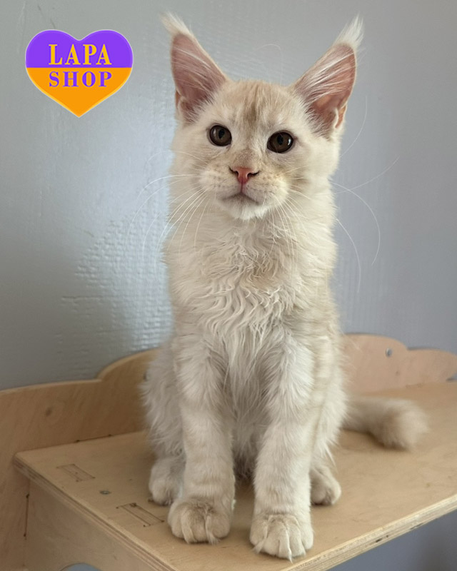 Panda — красавчик мейн-кун, у которого нежный кремовый серебристый окрас, что придает ему особую мягкость и изысканность.