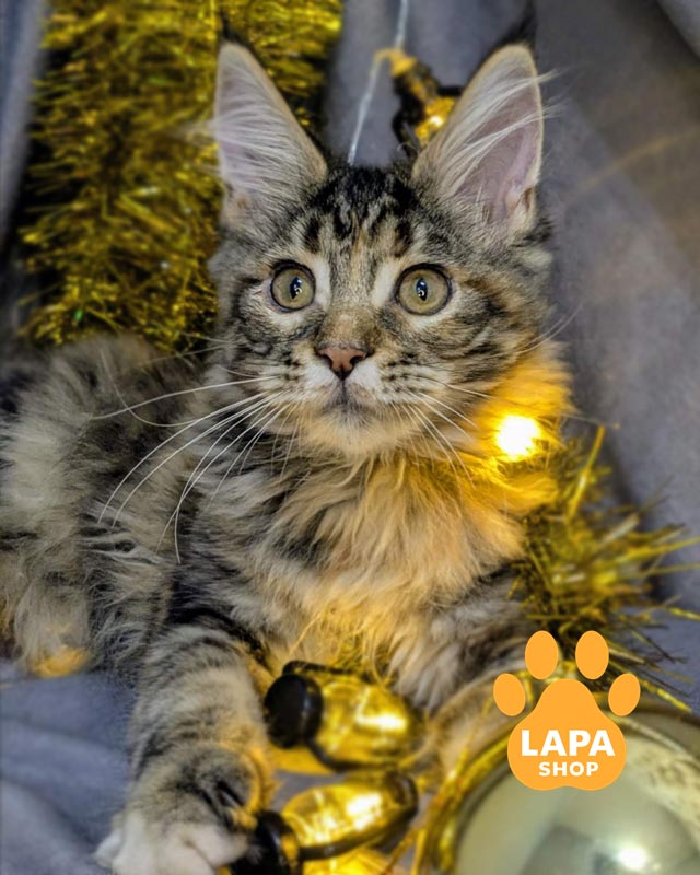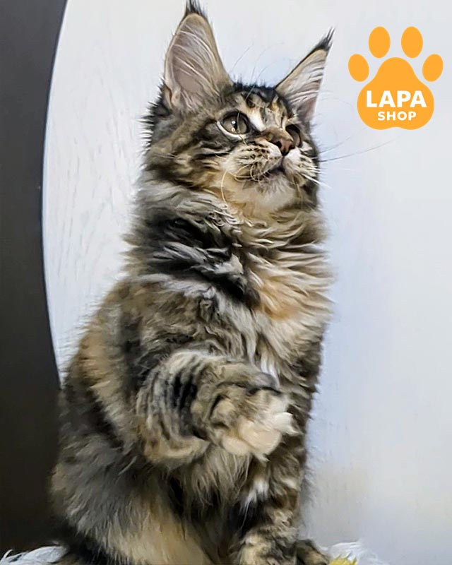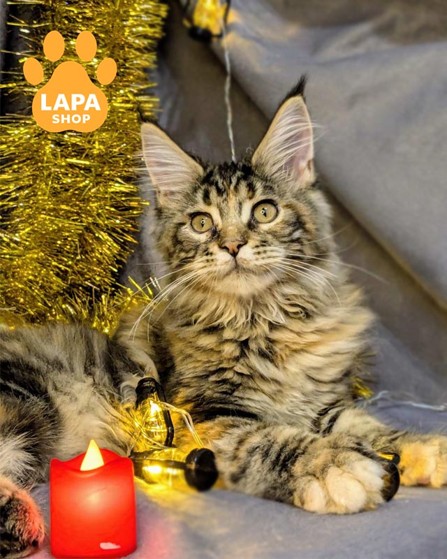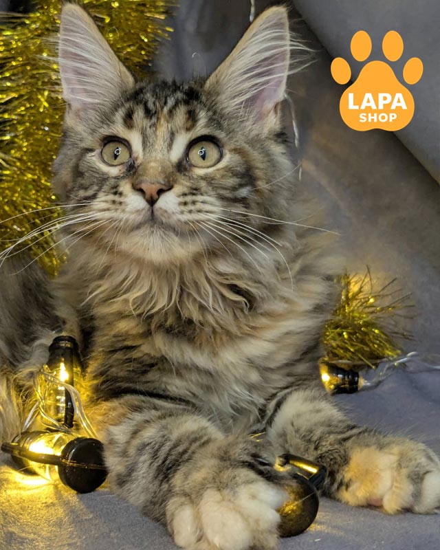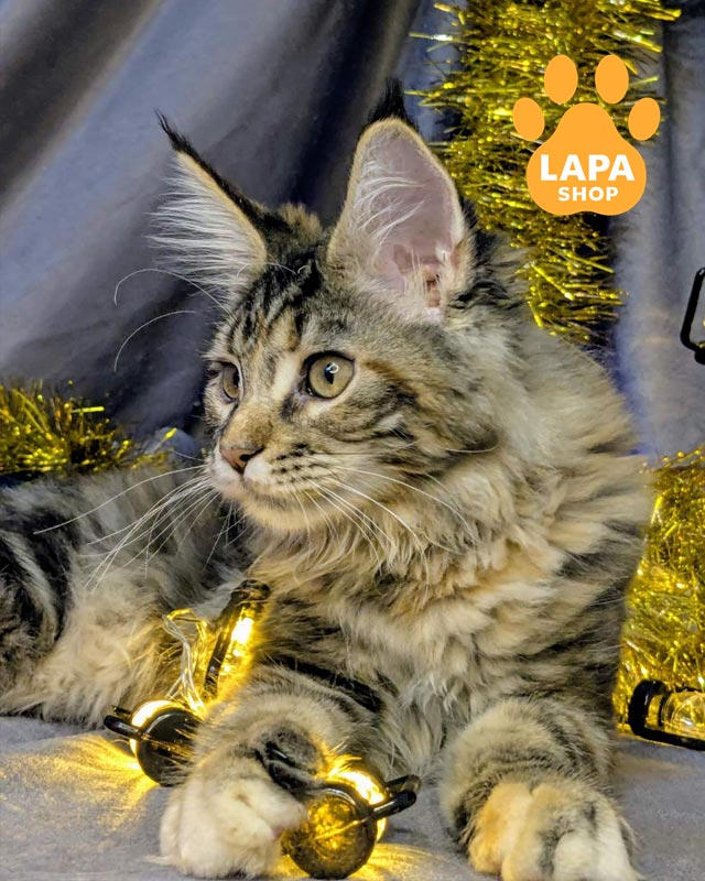 Кошечка очень хорошо опушенная, имеет большие кисти на ушках и тяжелый костяк.