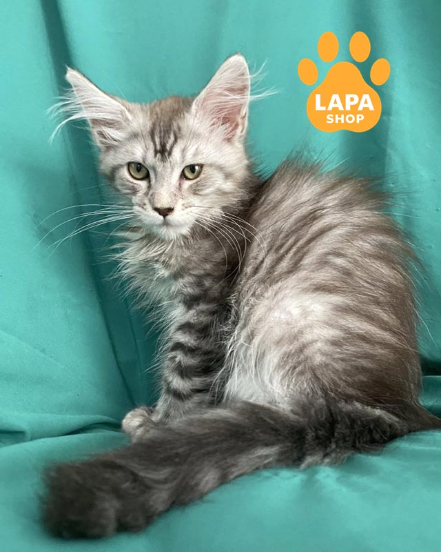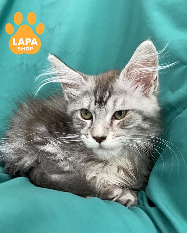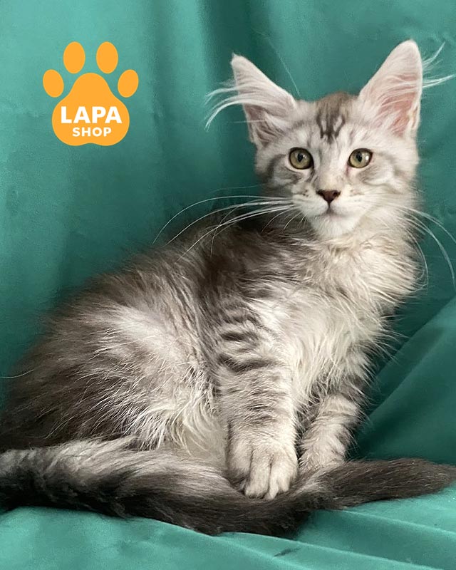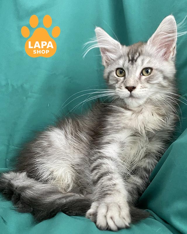 Ricardo Roy – впечатляющий мальчик мейн-кун с серебристым окрасом, где холодное серебро прекрасно сочетается с четким контрастным рисунком.