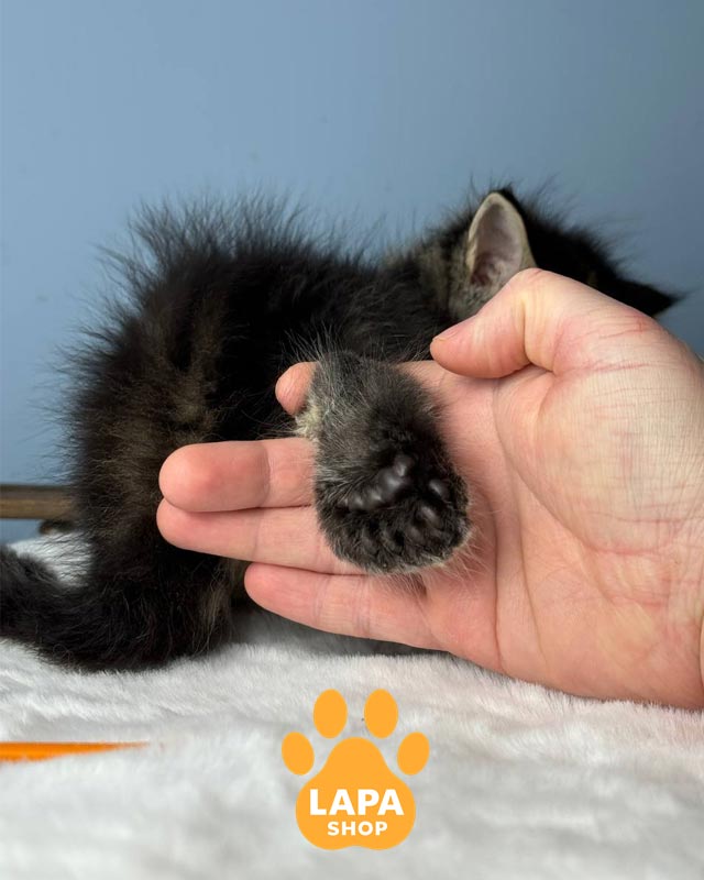 Полидактилия придает большим лапам особую массивность и делает внешность котенка еще более впечатляющим.