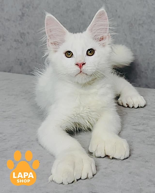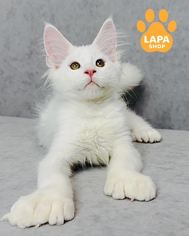Sebastian – изысканный мальчик мейн-кун с белым окрасом и полидактией, что делает его еще более особенным.