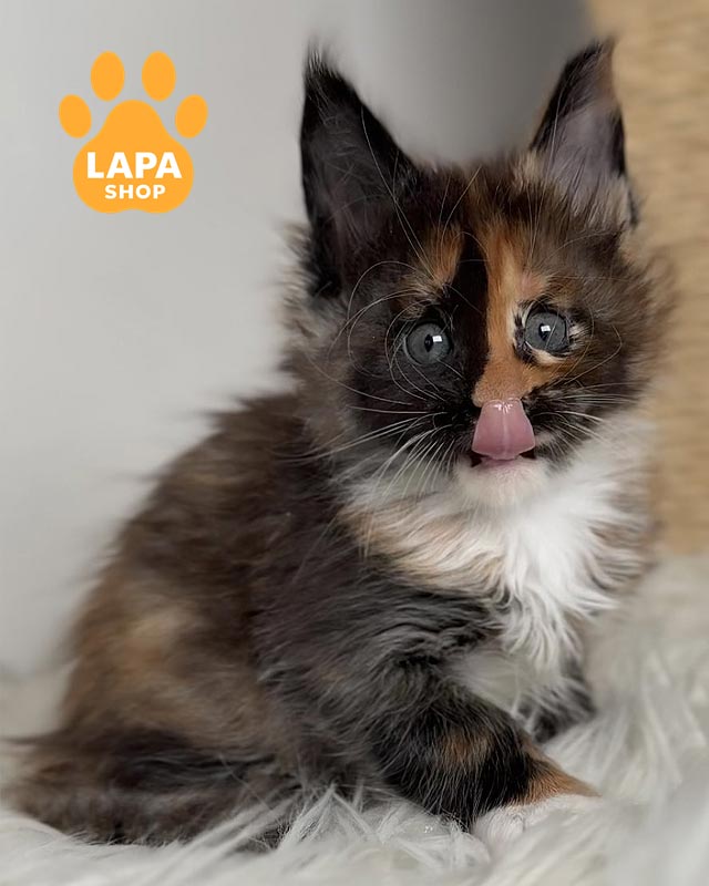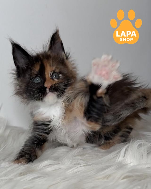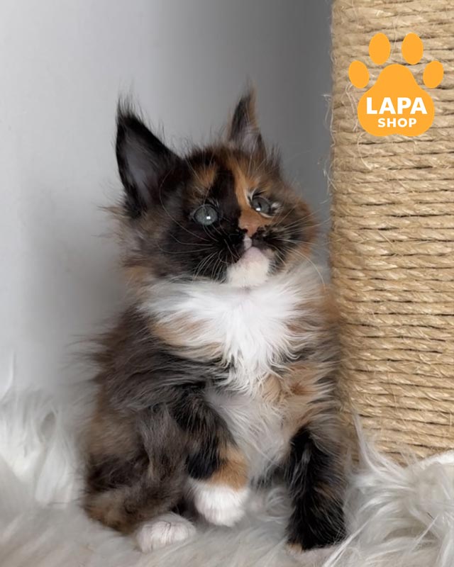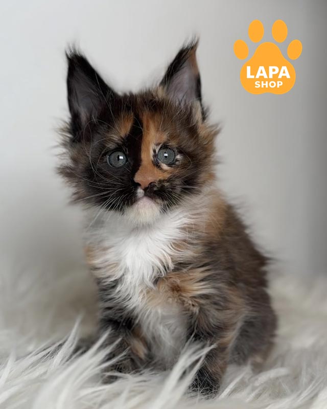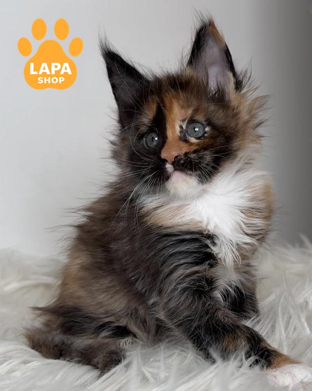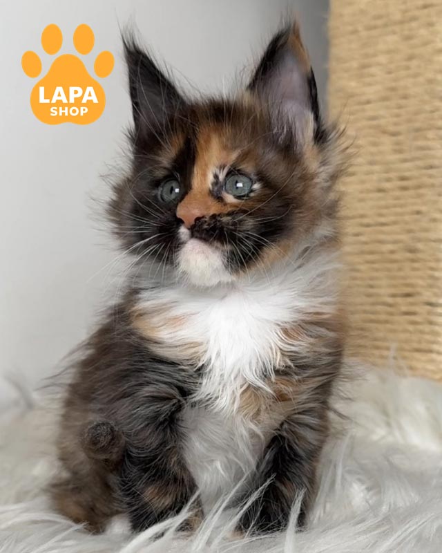 Мейн-кун девочка Tracy — настоящая юная королева с неповторимым черепаховым серебристым окрасом с белым (fs 09).