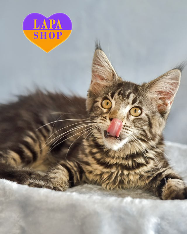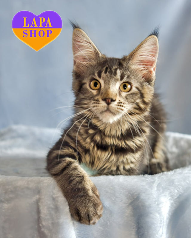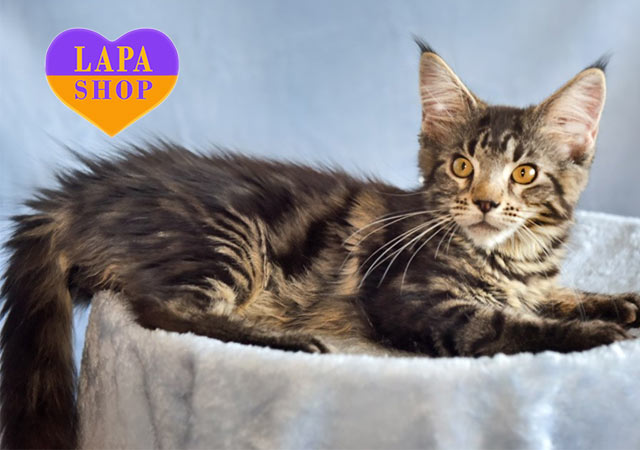 Утонченная девочка мейн-кун Uitni с черным мраморным окрасом.