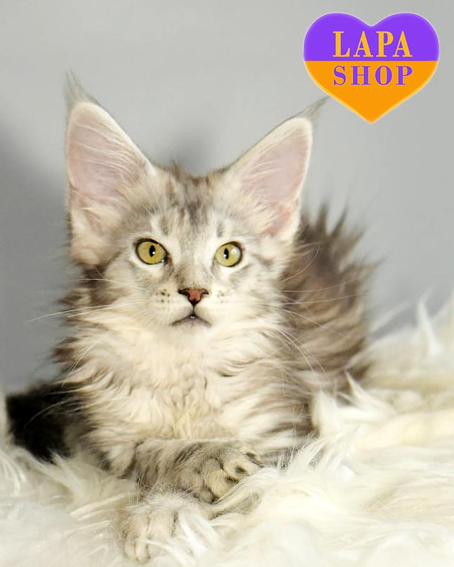 Ulick — очаровательный мейн-кун-мальчик с поразительным черным серебристым мраморным окрасом, который придает ему настоящий королевский шарм. Его выразительная мордашка, пушистые лапки и хвост вызывают восхищение с первого взгляда.