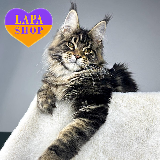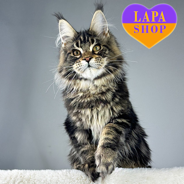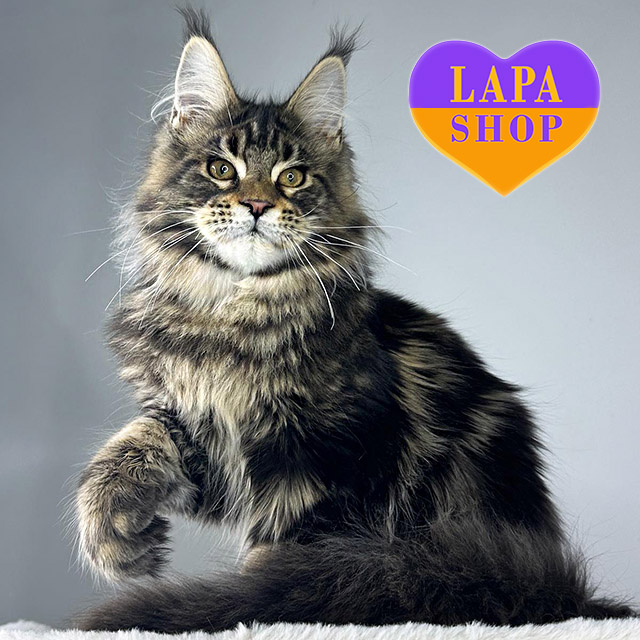 Umberto — очаровательный представитель породы с классическим черным мраморным (n 22) окрасом, который создает впечатление дикой элегантности.