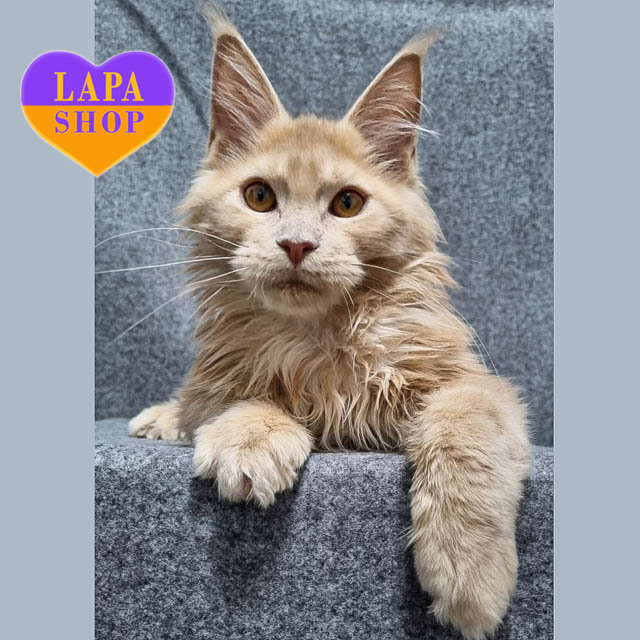 Uranus — харизматичный мальчик породы мейн-кун с роскошной кремовой мраморной (e22) окраской. Его грациозность и спокойный вид станут настоящим украшением вашего дома.