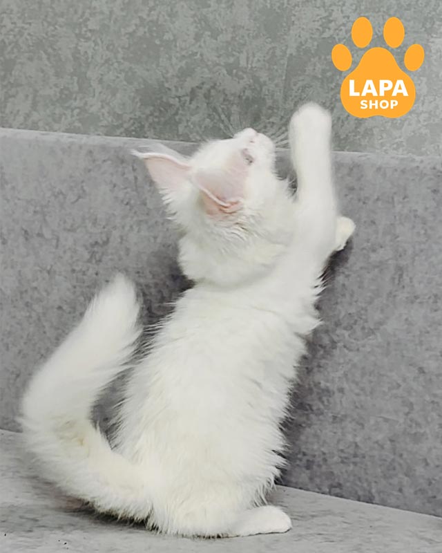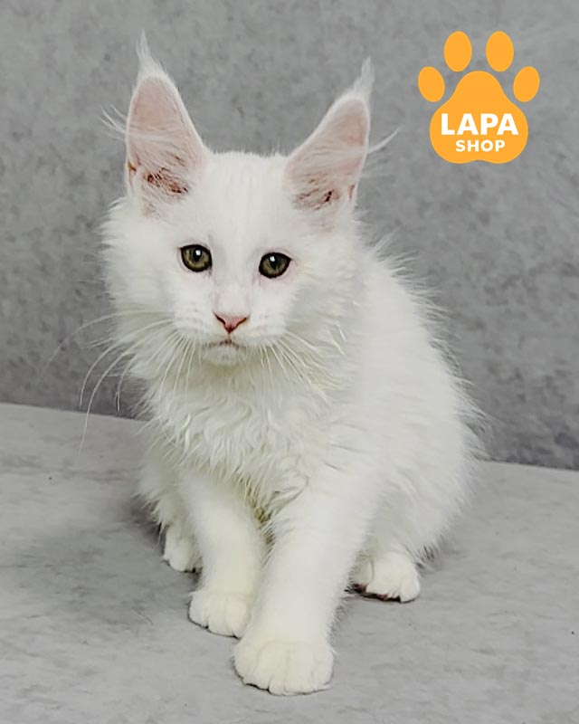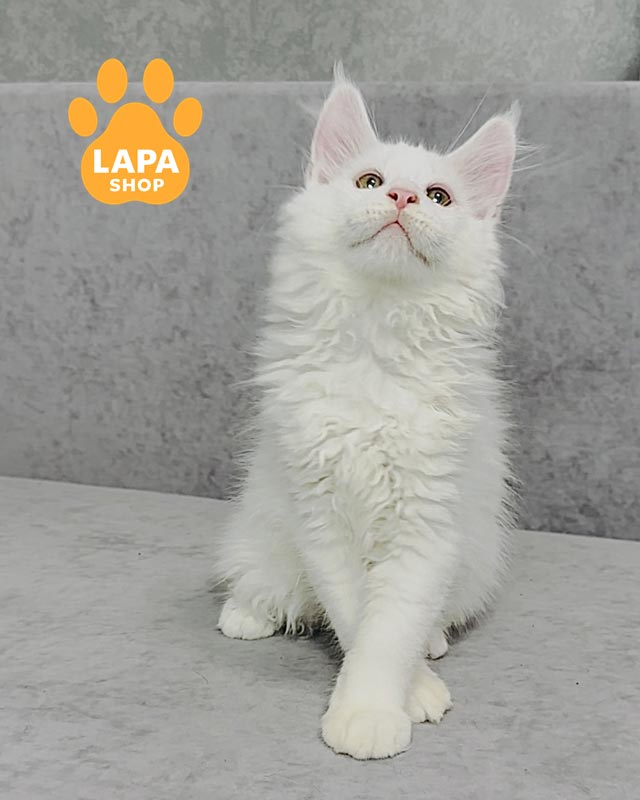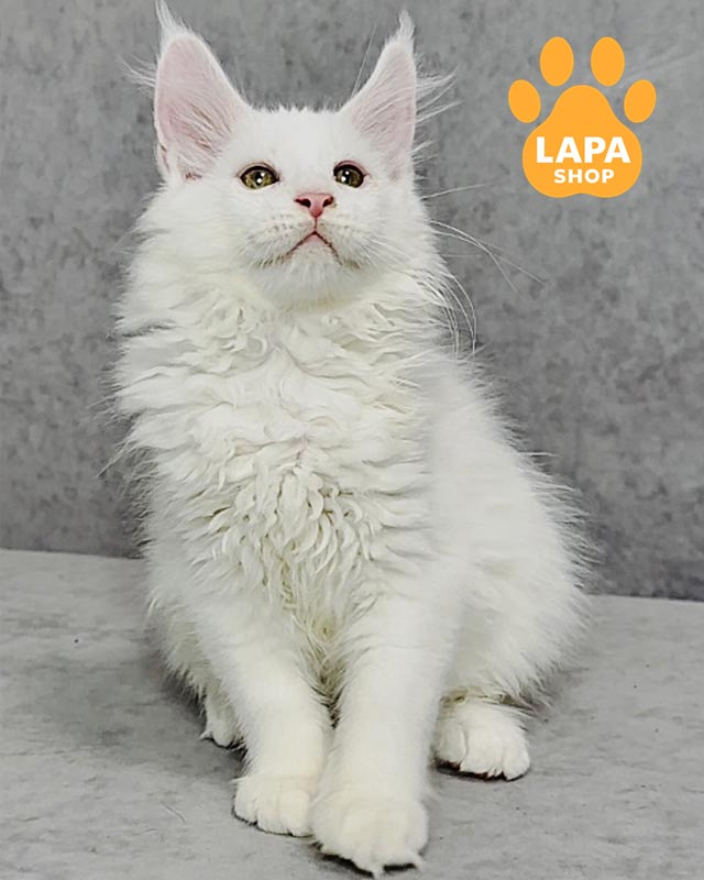 Ustin – белый мальчик с пушистой мягкой шерстью и величественными лапками.