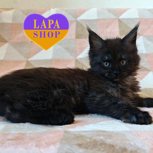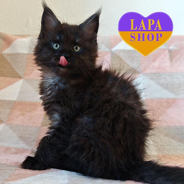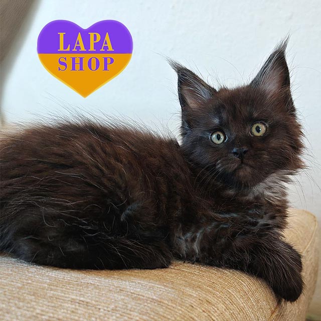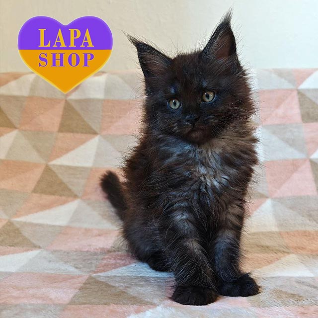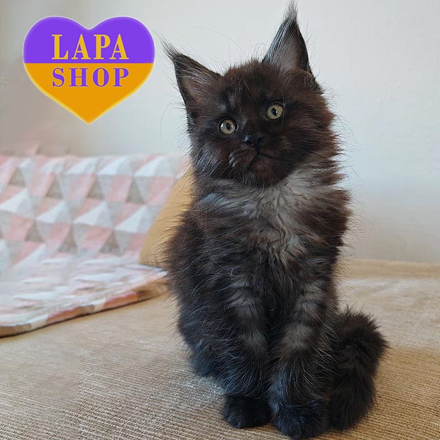 Wolfie — мальчик породы мейн-кун, у которого особый черный дымный окрас, который придает ему загадочность и сказочность. Его пушистая шубка нежная, как дым, а движения — грациозные и уверенные.