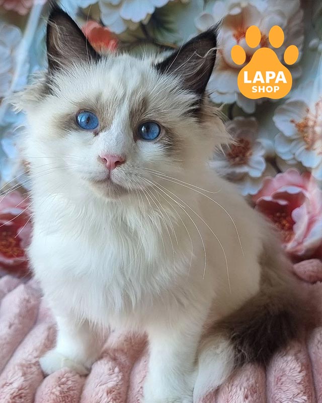 Его окрас «сил поинт с белым» придает образу утонченности и очаровательного контраста.