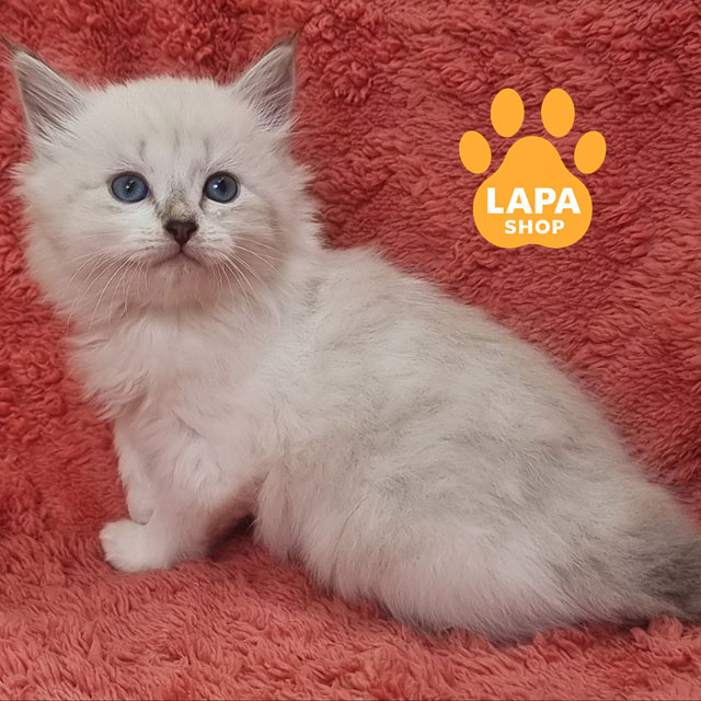 Uta – очаровательная кошечка породы невская маскарадная с уникальным сочетанием окраса blue lynx point и белого. Ее изящные оттенки и контрастные метки создают гармоничный образ, от которого трудно отвести взор.
