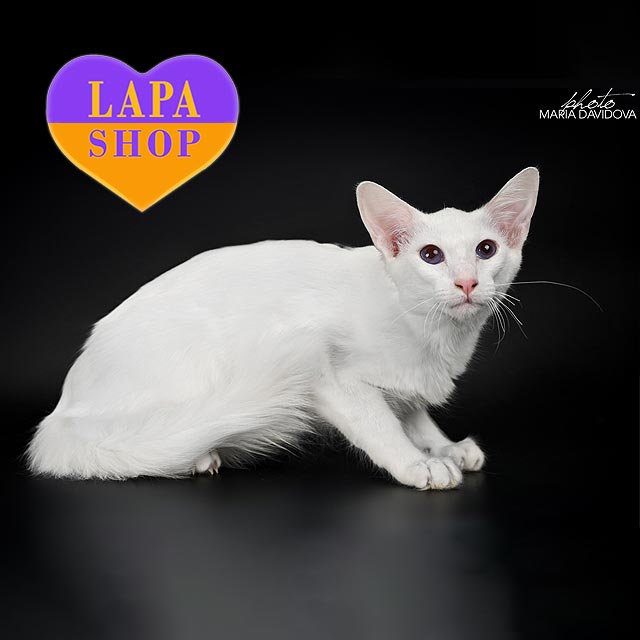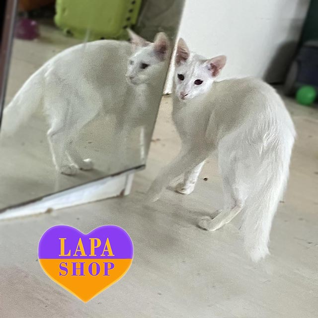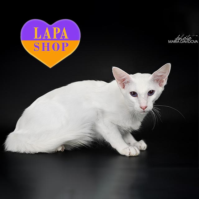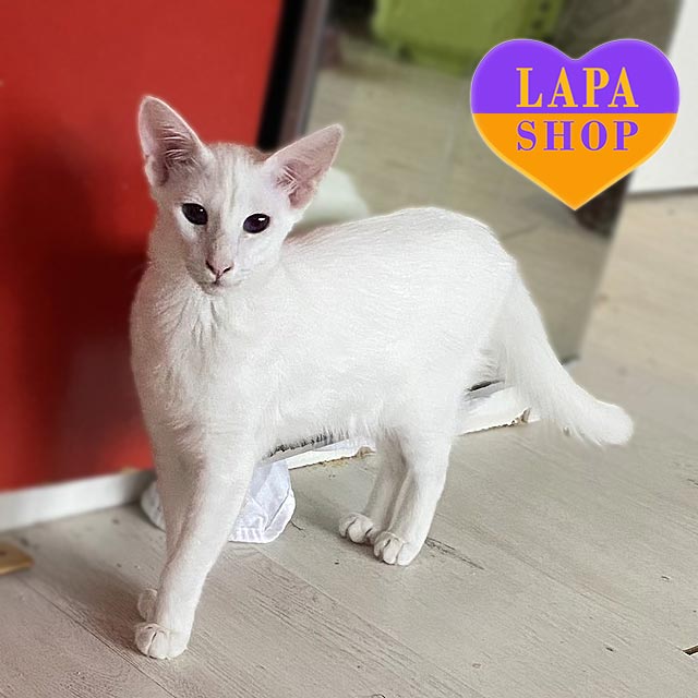 Carmella – это настоящая кошачья элегантность. Ее шелковистая белая шерсть гармонично сочетается с выразительными глубокими глазами.