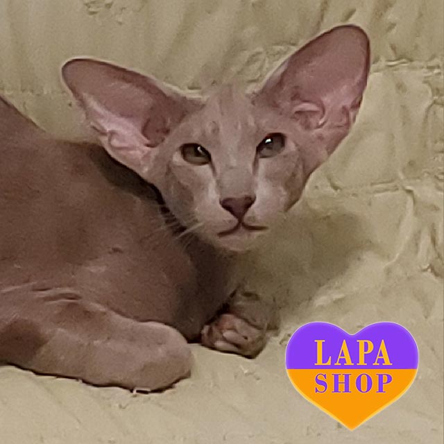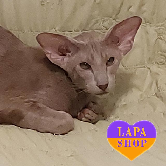 Окрас: лиловый (с). Котик имеет детский прокрас пятнышками, который сменится равноцветным без пятен во взрослом возрасте.