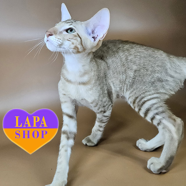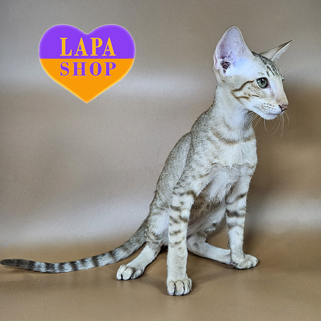 Он впечатляет изящными чертами, большими ушками и ярким пятнистым узором теплого шоколадного цвета.