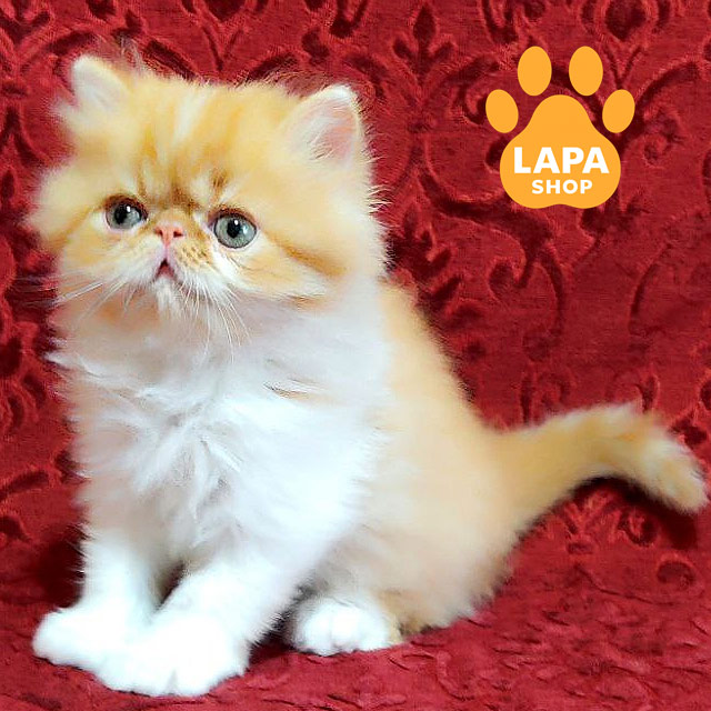 Фредерик – грациозный и жизнерадостный персидский мальчик с роскошной рыжей шерстью в сочетании с белыми отметками.