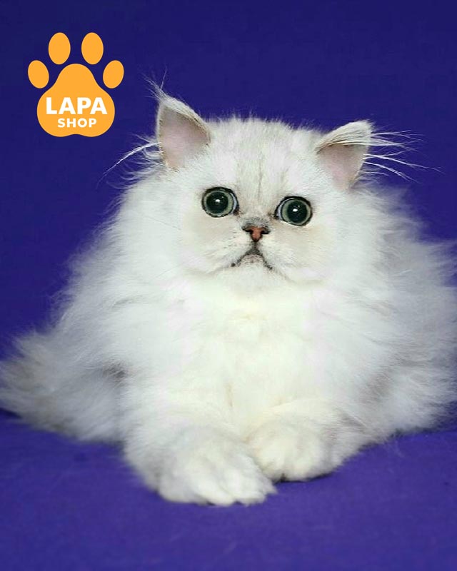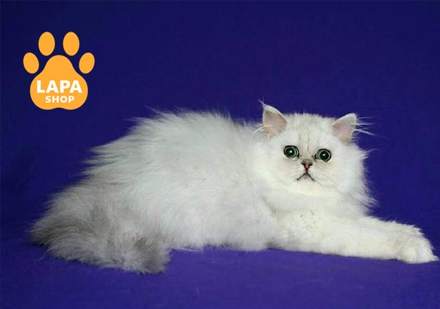Ее роскошная шубка нежно мерцает в свете, подчеркивая изящные черты мордашки и большие выразительные глаза.