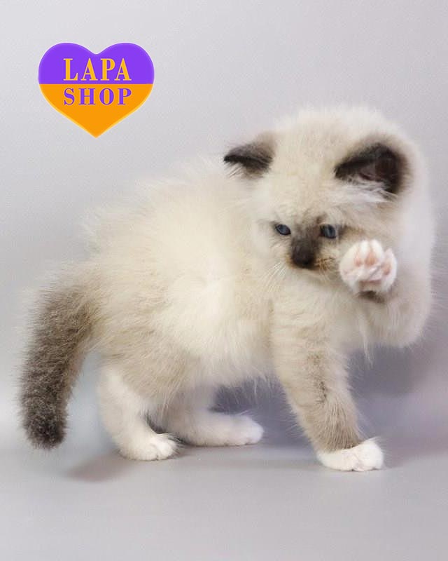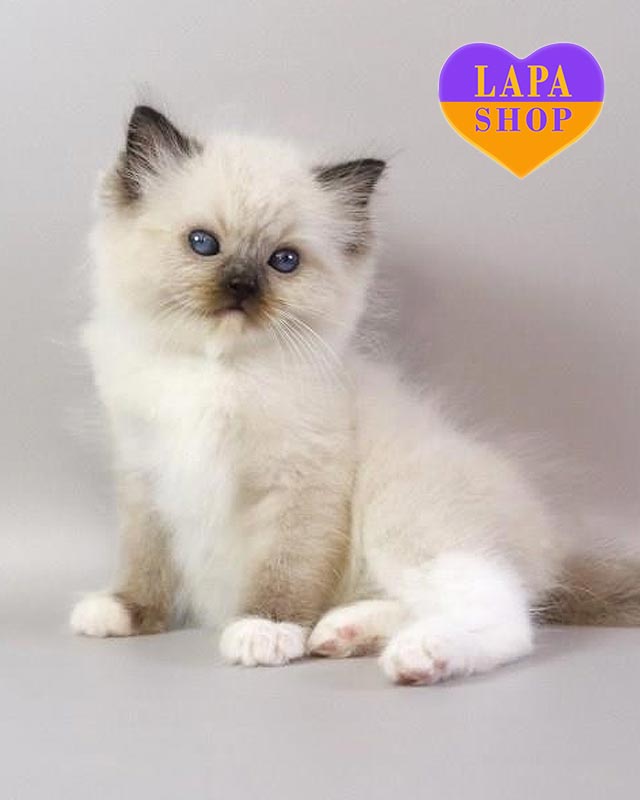Его густой шелковистый мех в окраске сил миттед гармонично сочетается с пронзительными голубыми глазами.