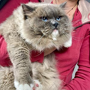 Очаровательный рэгдолл Muffin с голубыми глазами и нежной шубкой, которая делает его настоящим пушистым ангелом.