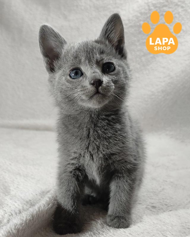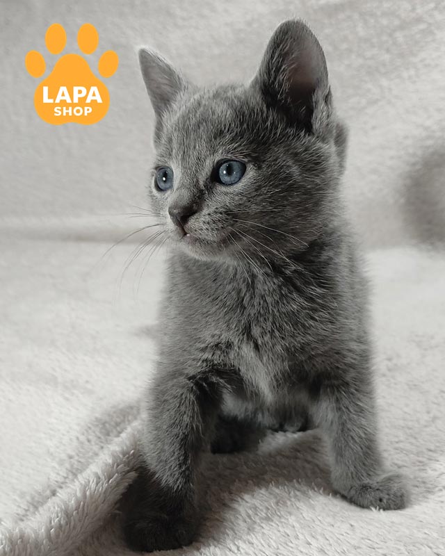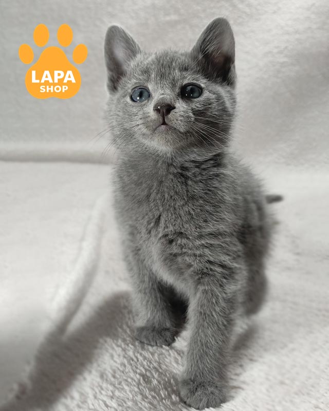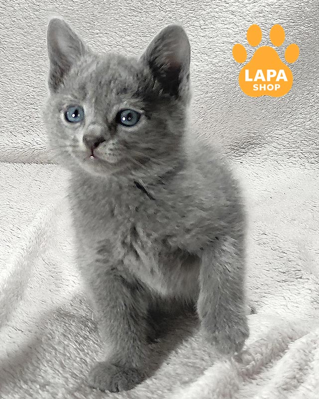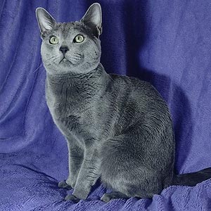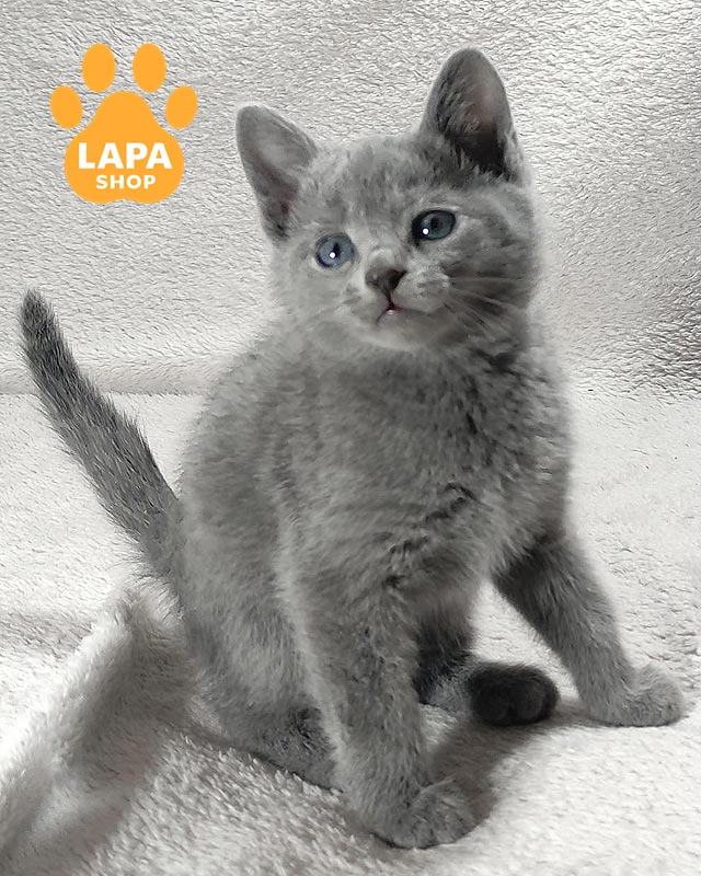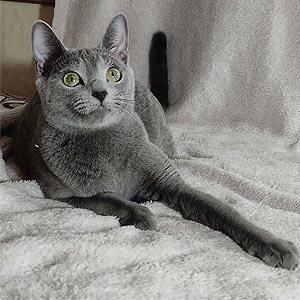 Лунтик — мальчик породы русская голубая с равномерным голубым окрасом, который имеет характерный холодный серебристый отлив.