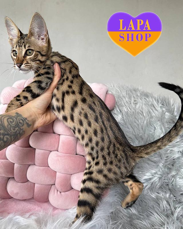 Mars – мальчик породы саванна F6 с диким окрасом и утонченным, спортивным телом. Он унаследовал экзотику предков-сервалов и ласку домашнего любимца.