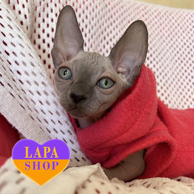 Фрея – утонченная маленькая богиня породы канадский сфинкс с нежным голубым окрасом. Она имеет бархатную кожу, большие выразительные глаза и грациозный силуэт.