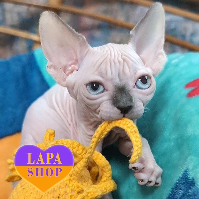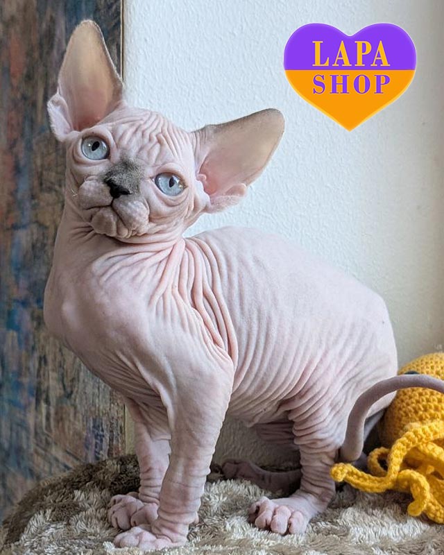 Нами – нежная жемчужинка в окрасе голубой арлекин минк. Эта очаровательная кошечка породы канадский сфинкс имеет изысканный окраск голубой арлекин минк. Ее кожа шелковистая на ощупь, а взгляд – ласковый и внимательный.