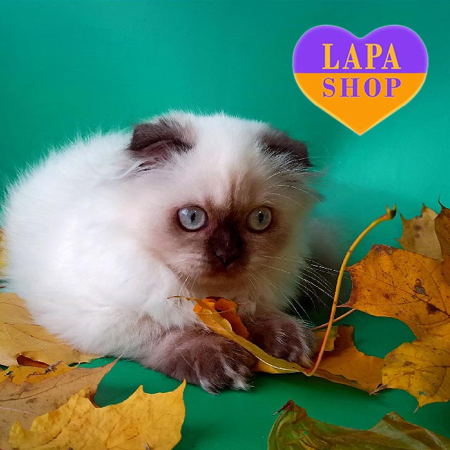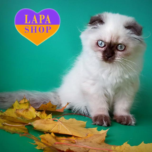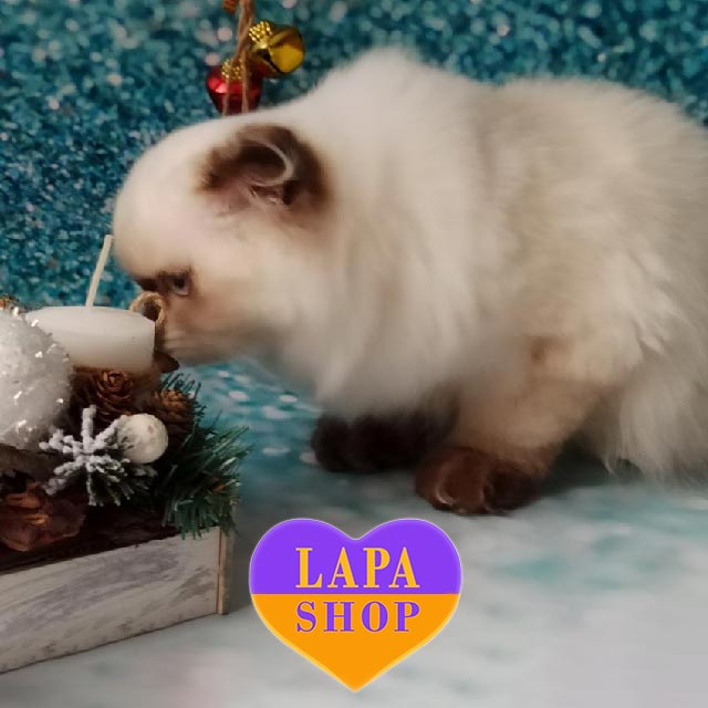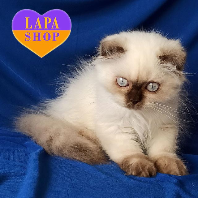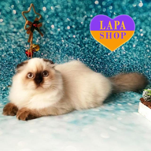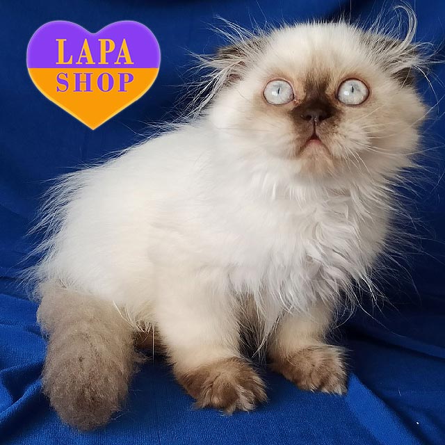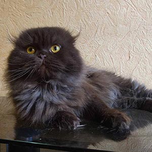 Папа — хайленд-фолд (шотландский вислоухий длинношерстный — SFL) — шоколадного окраса (b).