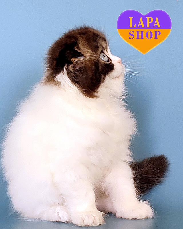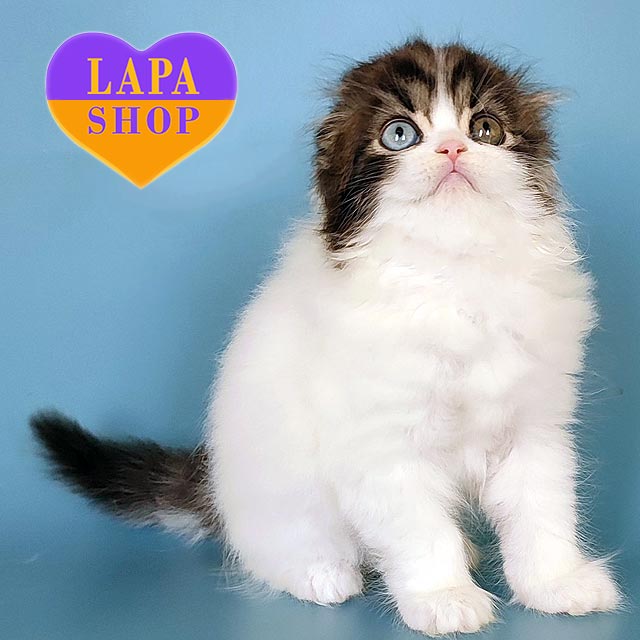 Oberon – уникальный мальчик породы хайленд-фолд с окрасом черный табби ван и роскошными разноцветными глазами. Его пушистая шерсть, белый фон и изящные темные узоры создают настоящую магию в образе. Сложные ушки и носительство гена освещения придают этому малышу особый племенной потенциал.