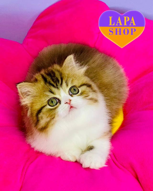 Джолин — роскошная девочка хайленд-страйт имеет редкий и изысканный окрас: шоколадно-черепаховый мраморный биколор с длинной шелковистой шерстью, играющей теплыми красками.